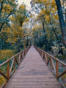 Bu muhteşem güzellikte olan korunun ormanlık alanı tarafına gittiğinizde sazlıkların üzerine yerleştirilmiş tahta köprüleri farkedeceksiniz. Tahta köprülerin üzerinde yürüyüş yaptığınızda kuş seslerinin cıvıltısını duyarak gezintinize devam edecek, kendinizi adeta bir botanik bahçesinde geziyormuş gibi hissedeceksiniz. Manzaranın güzelliğinden düğün, nişan organizasyonları için çekim yapan fotoğrafçılar da faydalanmakta olup, yürüyüş esnasında kendinizi gelinlik ve damatlık giymiş çiftlerin yanından geçerken bulabilirsiniz.